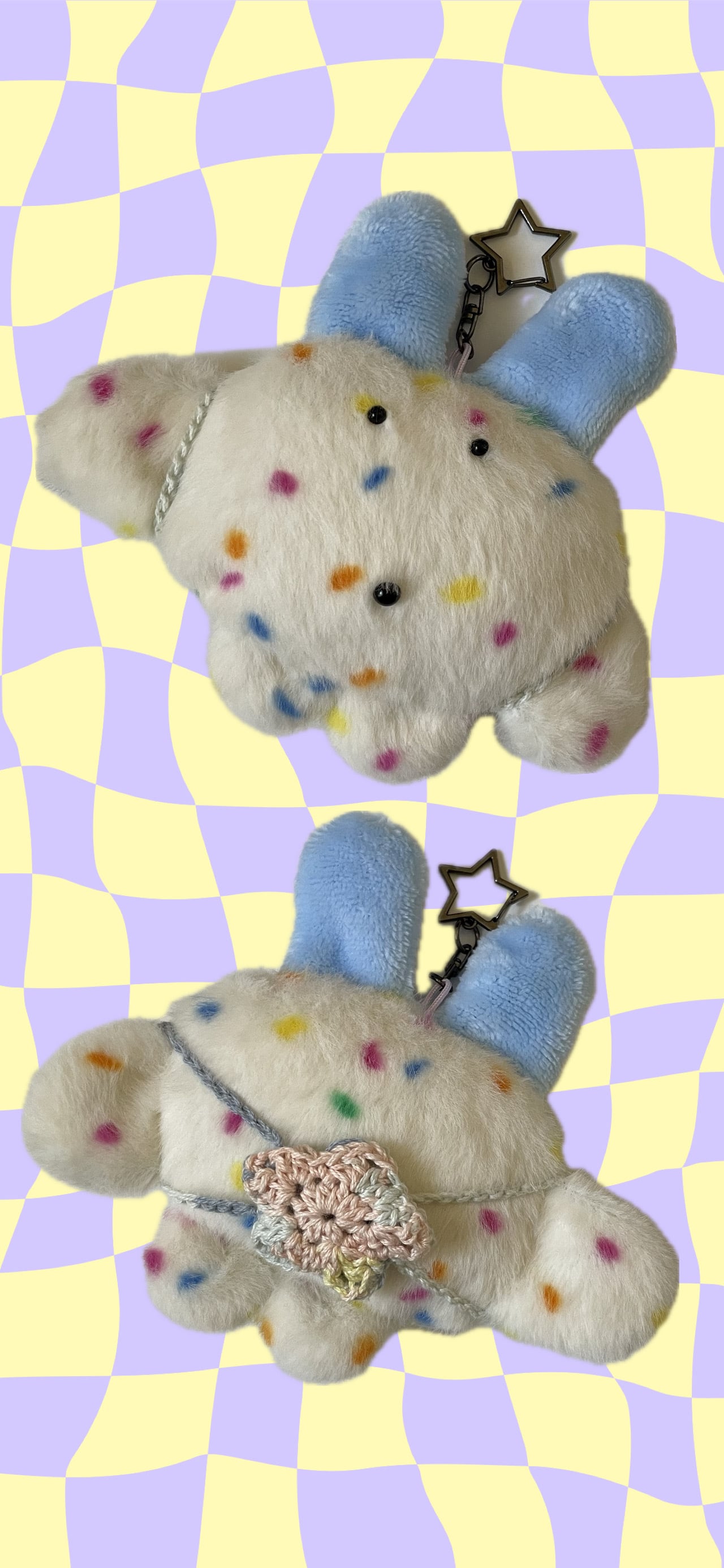ふわふわのキーリング お星様のリュックを背負っています 横17×縦14