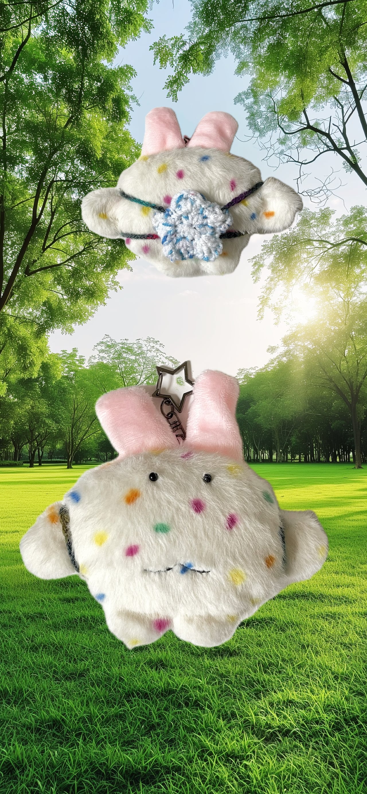 ふわふわのキーリング お星様のリュックを背負っています 横15×縦13