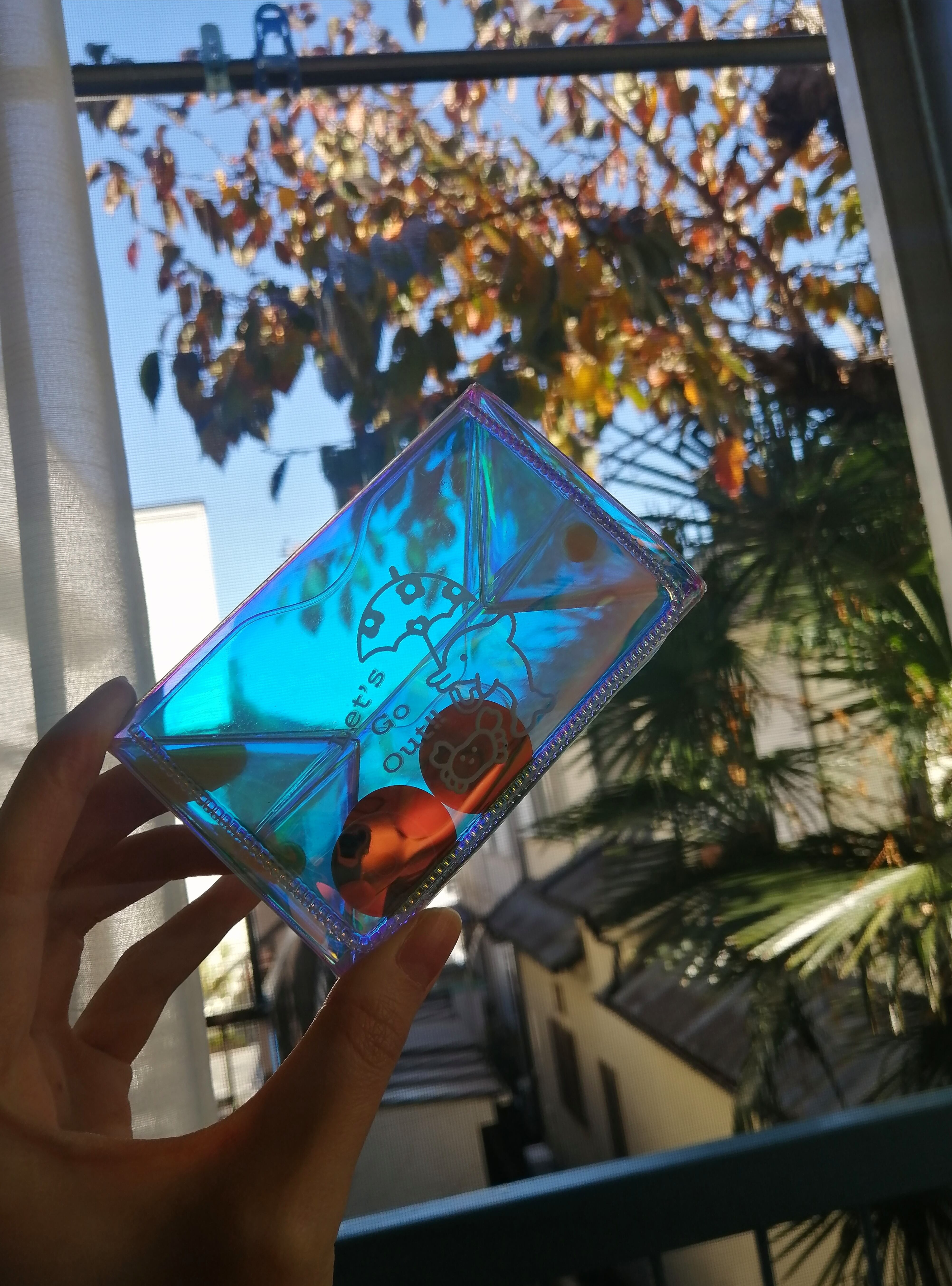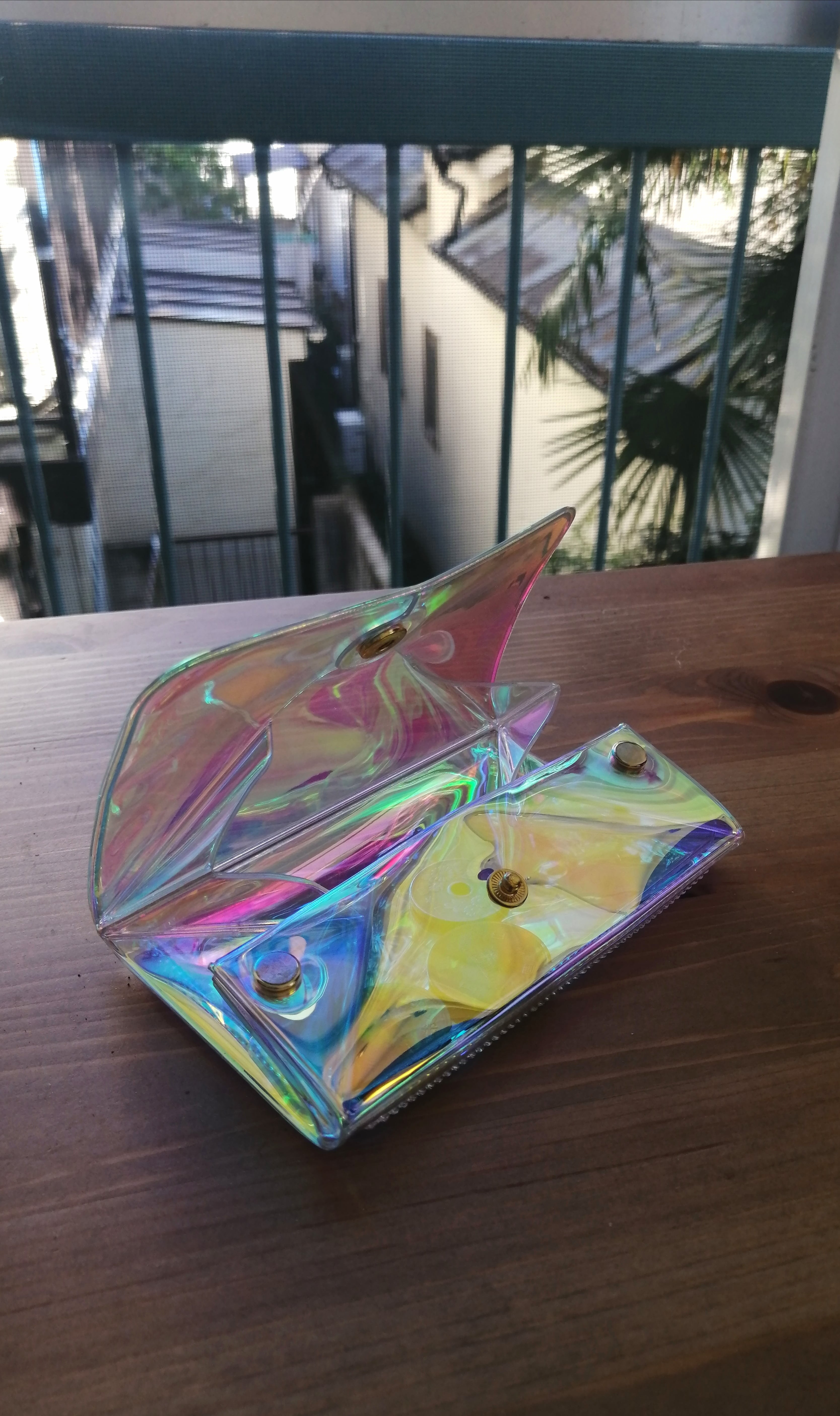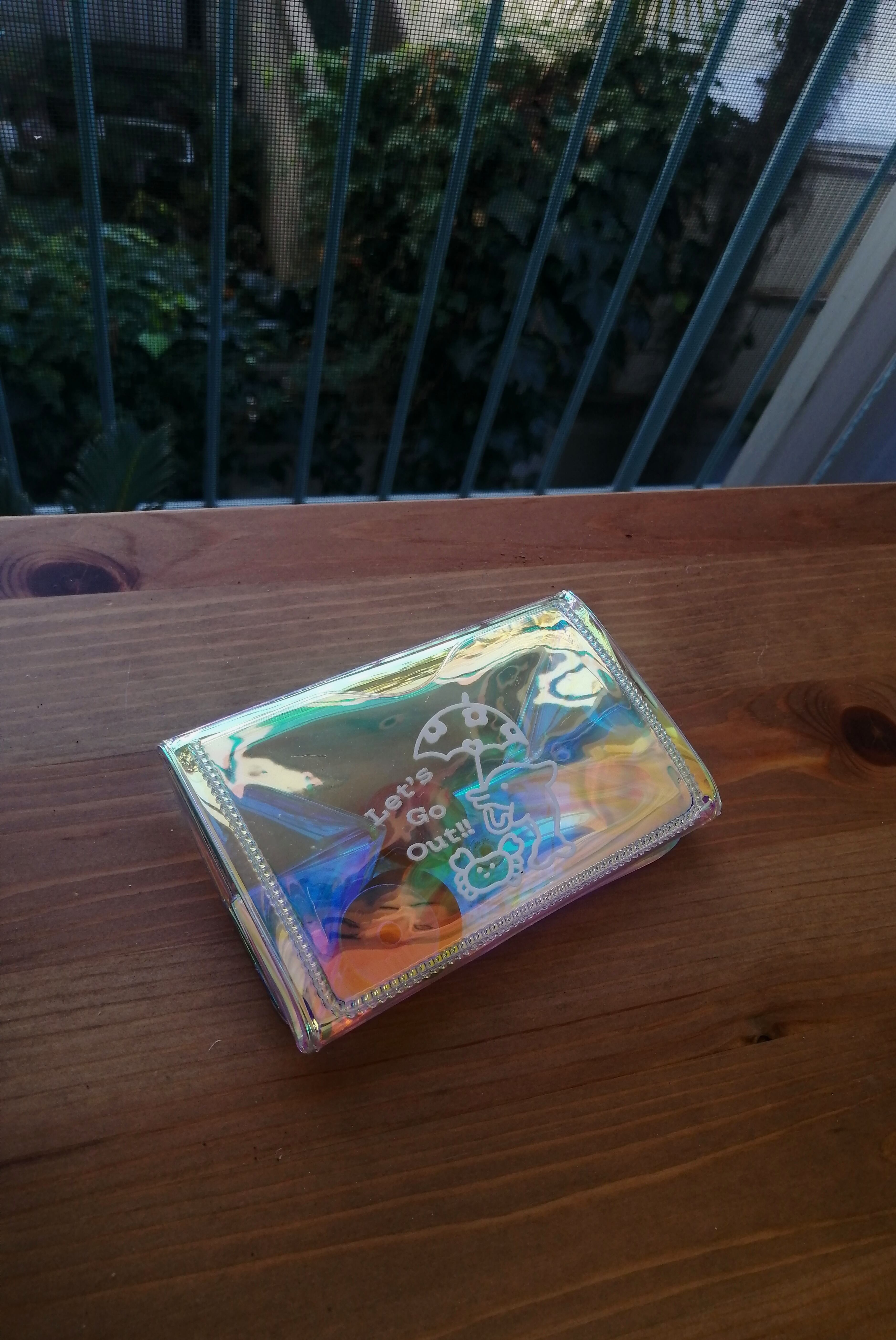 オーロラ素材の小さめのお財布です。 ちょっとしたお出かけ時に使いやすいサイズ